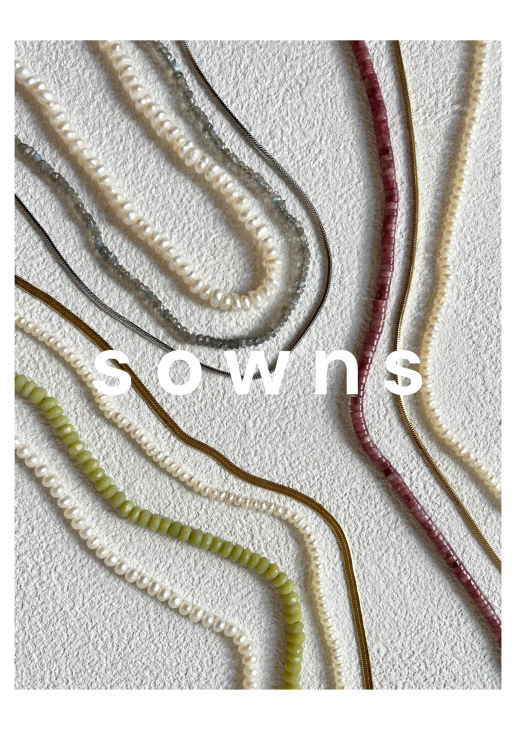 [Brand Concept] Value your own (=your own individuality) and coordinate with s (=spice, sense, strain…). As part of our brand concept, sowns designs accessories based on the idea that the wearer should be able to cherish their own individuality and wear them in a way that suits them best. We strip away unnecessary elements and keep things simple. We carefully consider the combination of materials, silhouettes, and color schemes when creating our products.