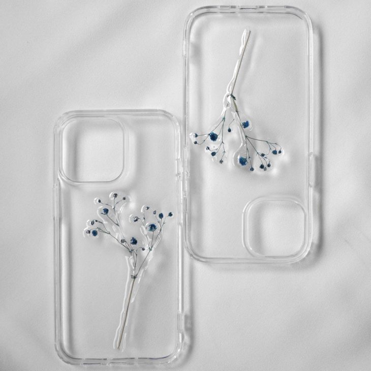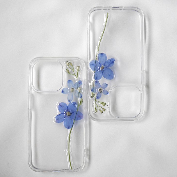 押し花ではない、立体感のあるデザインでお作りしたスマホケース。