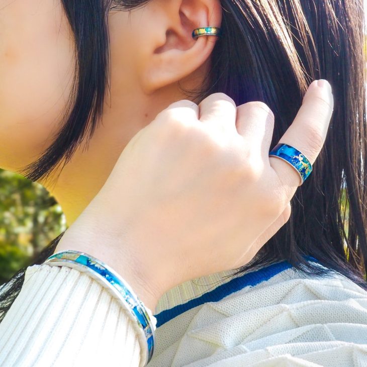ペイントで作品に表現した同じものは一つとない一点物アクセサリー